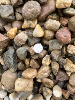 We have beautiful 3/4 inch and 1-1/2" Local River Rock and Mountain Granite decorative rock that is very popular, both because it is so attractive and because in some cases our price is 50 percent less than the landscaping material companies.